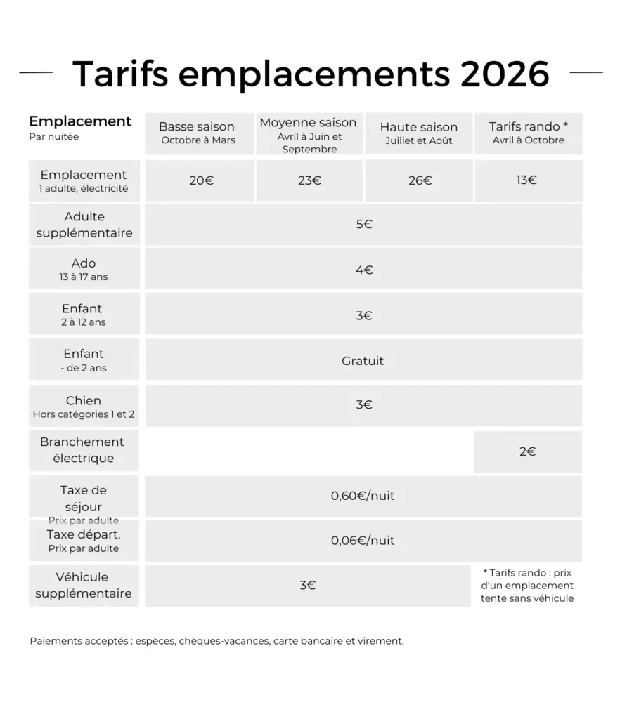 Tarifs 2026 Camping Pause Loire